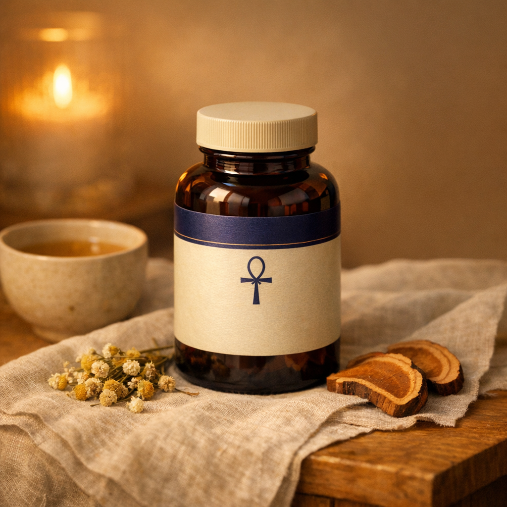 Transition into rest with reishi mushroom, chamomile, and glycine. Available as capsules or loose-leaf tea blend.